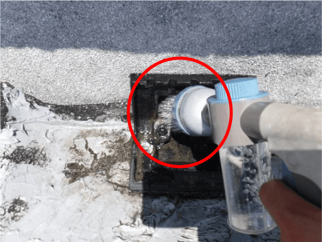 散水調査を経て、絞り込んだ2箇所の雨水の浸入の疑いのある箇所に検査液を散水しました。