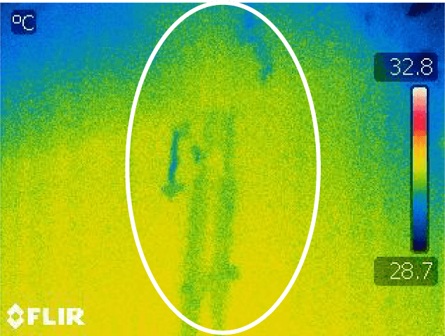 目視ではわからない雨漏りも赤外線サーモグラフィカメラを使用すればはっきりと視認することができます!