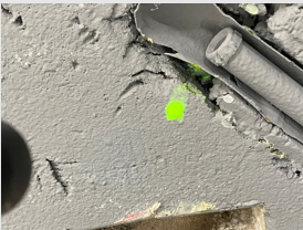 今回は、ガス注入調査と紫外線発光検査液を用いての雨漏り調査を行い、