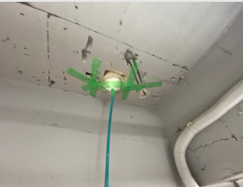 今回調査させていただく建物は5階建てのマンションの5階天井でした。室内雨漏り箇所の状況から、 今回はガス注入調査を選択しました。