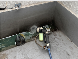 ガス注入調査によりガス反応箇所が確認できれば、ガス反応箇所へ散水を実施し、 雨漏り状況を再現するという調査を実施します。