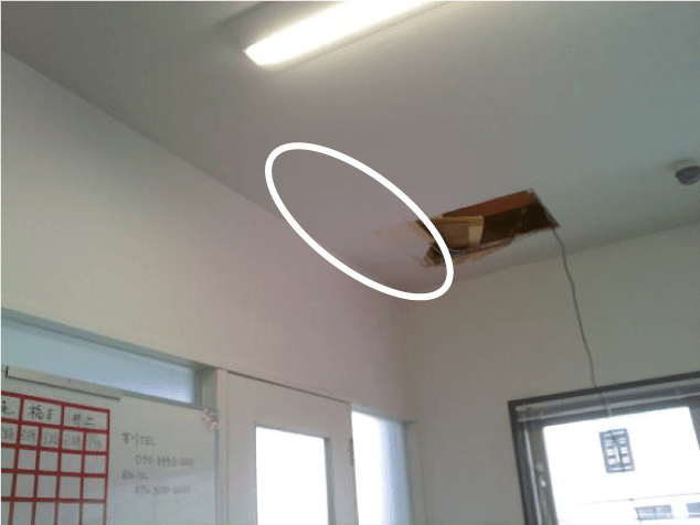 半月ほど前から3階建ての2Fのテナントのオフィス天井から雨漏りがあるとのことで施主さまはかなりお困りの様子でした。