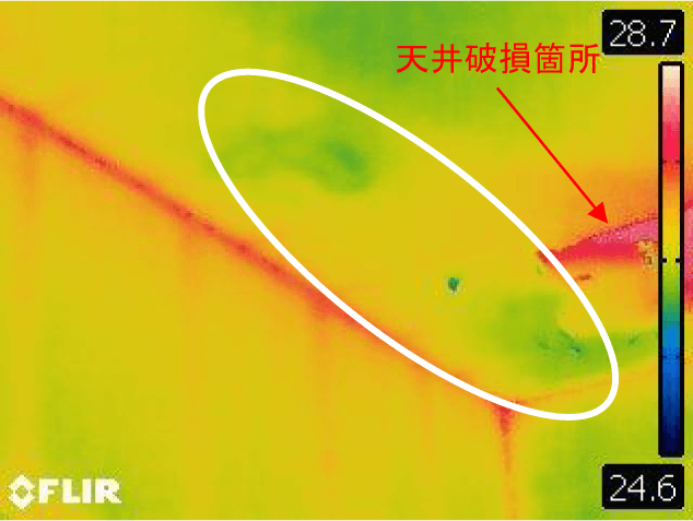目視ではわからない雨漏りも赤外線サーモグラフィカメラを使用すればはっきりと視認することができます!