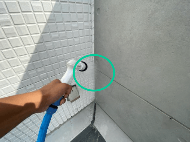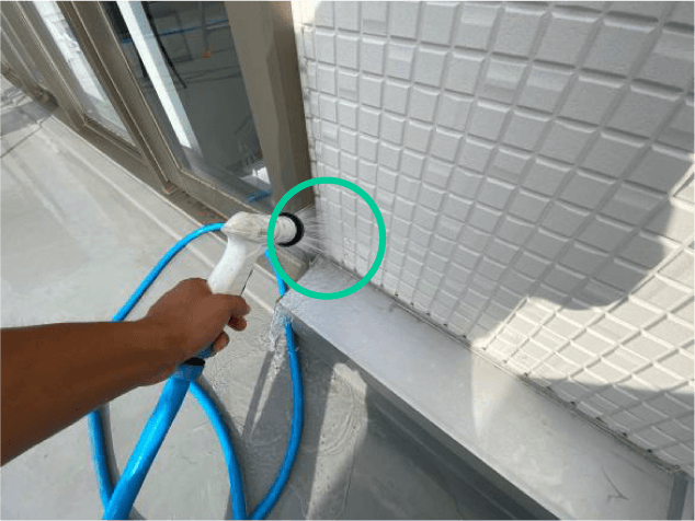 サッシ、土間、外壁など、合計○20箇所以上に散水して
