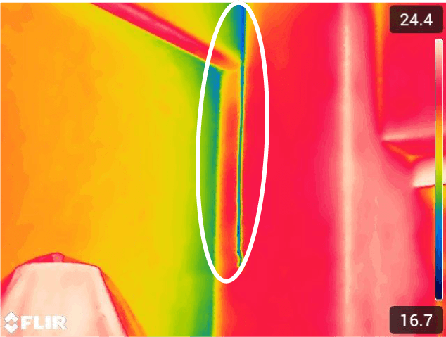 目視ではわからない雨漏りも赤外線サーモグラフィカメラを使用すればはっきりと視認することができます!
